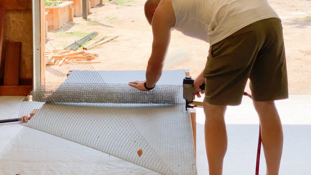 Before moving forward, we attached 1/2 inch hardware cloth to the bottom of the bed. This is essential for keeping out pests like gophers and other burrowing animals.