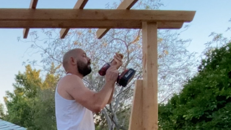Next, we assembled the frame. Using 3-inch wood screws, we connected the 7-foot pieces to the 3-foot pieces, creating a sturdy rectangular structure. For added stability, we screwed in 2×4 pieces at each corner.